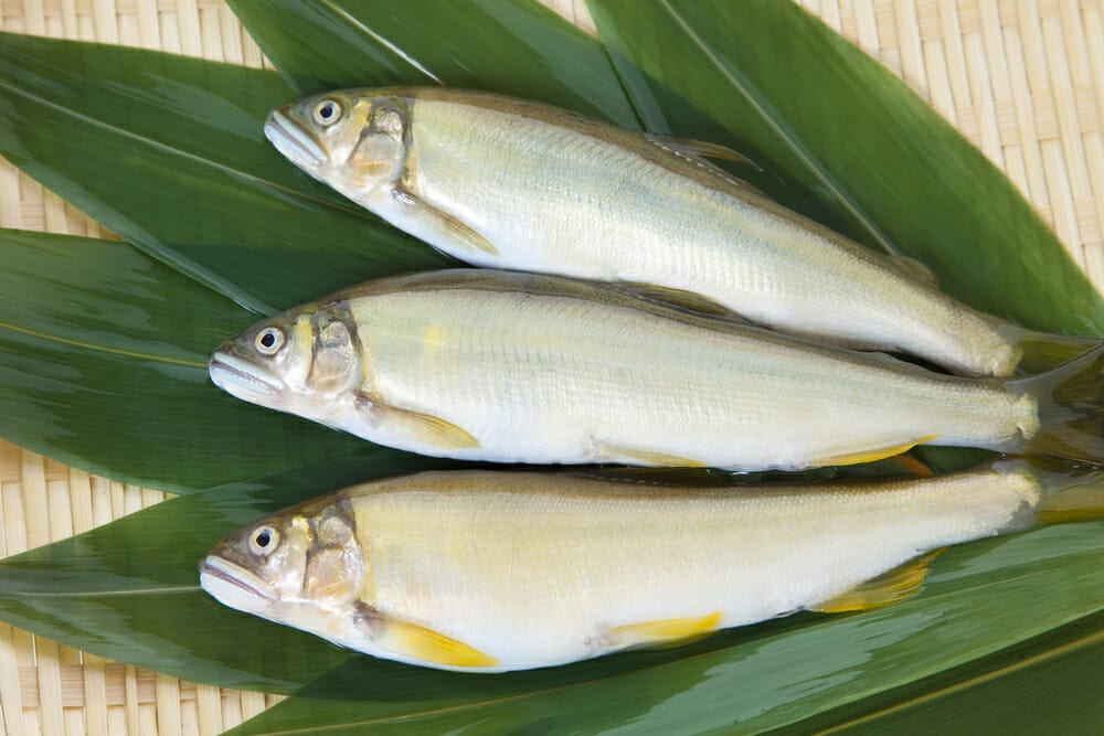 6月頃のあゆ,鮎は、丸ごとフライ、天ぷらも美味しいです。姿焼きでは、真夏の成熟したあゆ,鮎が良く、ひれに十分塩をつけ焼け落ちないようにして、強火で遠くから焼き上げます。秋になると産卵期で子持ち鮎となります。