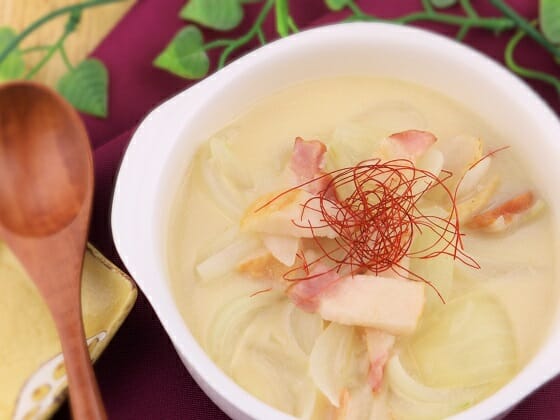 玉ねぎ レシピ,玉ねぎとベーコンの白味噌煮