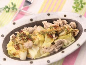 豚肉はしゃぶしゃぶ感覚に茹でて、キャベツも同様のイメージで茹でると良いです。両方の食材とも、火が通るのがとても早いので、時短料理として、とても重宝するかと思います。