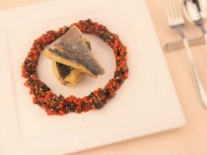 5月~6月にかけてが旬のイサキの料理です。イサキは白身魚でありますが、旬のこの時期は脂を多く含む為、塩焼きにしても、刺身にしても美味しいです。ピリ辛ダレとの相性がとても良いです。