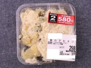 数の子の旬は、にしんの産卵期にあたる3月~4月が旬とされています。生数の子を下処理すると『たけのこ』同様、時間がかかります。お惣菜にほんのひと手間加えるだけで、美味しくできてとても重宝します。『数の子のワサビ和え』がお惣菜コーナーにありました。この料理は、少し辛いので、お酒のおつまみとしてはもちろん、少し変わった食卓のおかずとして、ご紹介いたします。