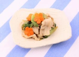 - サニーレタスを茹でたお湯を再度沸かして、次に切った豚肉をサッと茹で、色が変わったら流水に取り冷やします。