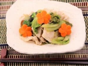 豚肉には油分を多く含まれており、豚肉を茹でると、余分な油が豚肉から取れ、サッパリと出来ます。豚肉から出た余分な油が水分に溶け出し、次に茹でる食材に油が付いてしまいます。レタスに限らず、一緒に茹でる場合は、野菜から茹でる事をオススメします。