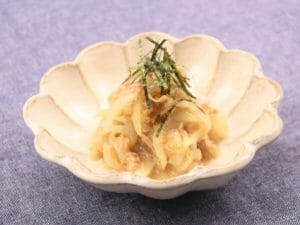 サラダや和え物は、柔らかい食感を楽しむ事ができます。水にさらすとなお良いです。