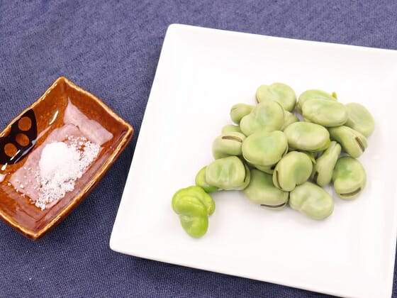 5. ソラマメの皮を剥いて、塩を付けて完成です。
