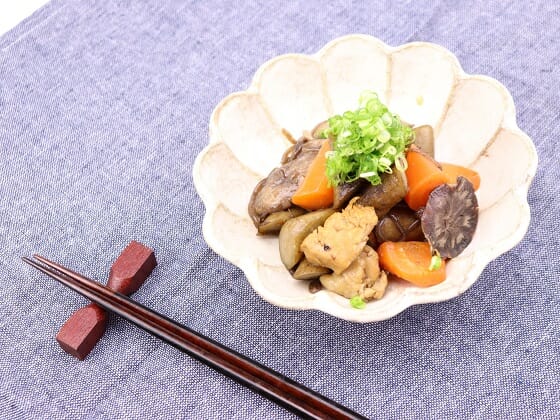 筑前煮と言えば、れんこんが入っているイメージがありますが、煮物と言えば、家庭の味と言われるほど、日本人にはとても身近な料理ではないかと思います。また、本来は鶏もも肉を使用する所ですが、今回は鶏むね肉を使用しております。(鶏もも肉の方が油があって美味しいかも)そして、食材も、人参、ごぼう、干しシイタケ、糸こんにゃくの4種類を使用しておりますが、この内の2種類+鶏肉でも問題ありません。冷蔵庫の中身と相談して、調理する際は参考にして頂けたらと思います。