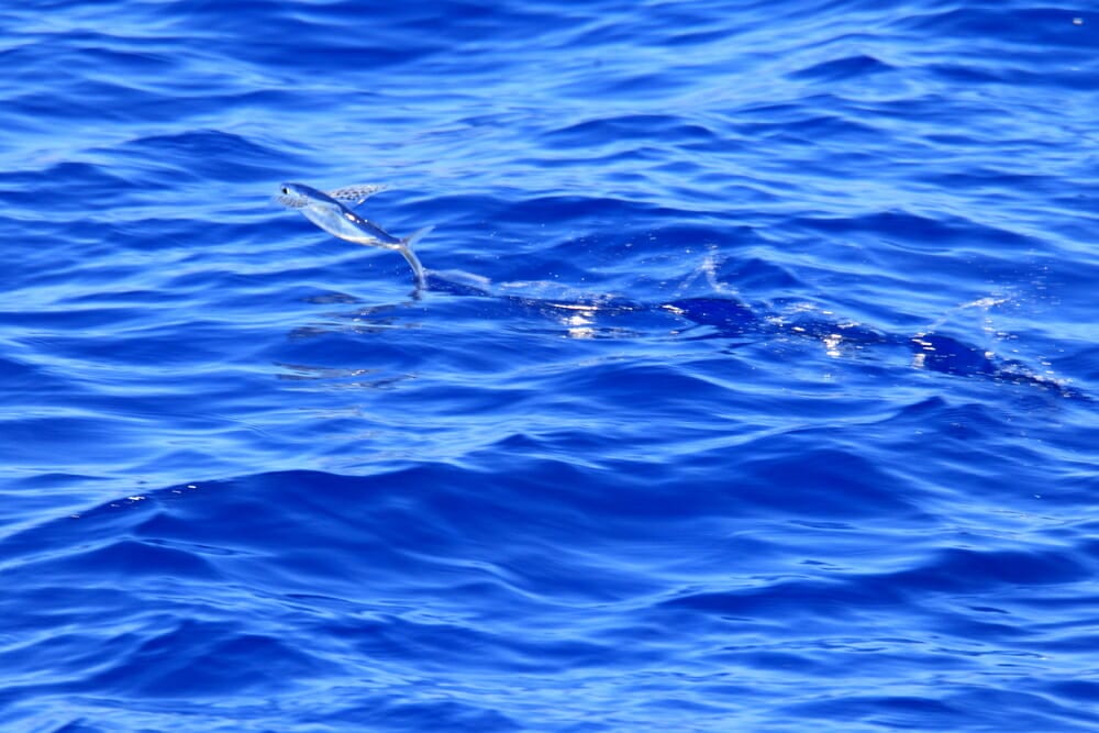 全長35cmほどで、胸ビレが翼のように大きく、空中を飛翔します。黒潮にのり、群れて北上する外洋性の暖海魚です。4~7月頃に沿岸の海藻に産卵します。収穫期は春とび、夏とびと呼ばれ、八丈島で獲れる夏とびを「ほんとび」と言います。40m以上を超える大型のものは、「大とび」と言われています。島根県や鳥取県などでは「あご野焼き」という、トビウオのすり身に地酒等で味付けをして焼き上げた郷土料理があります。(写真:あご野焼き)